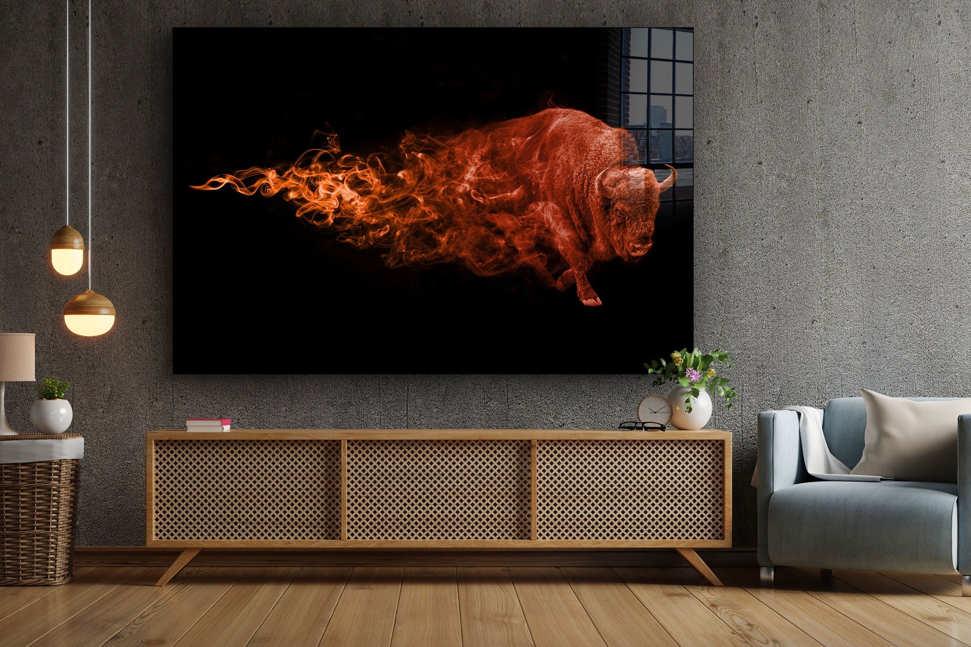 Abstract Bison, Large Glass Wall Art