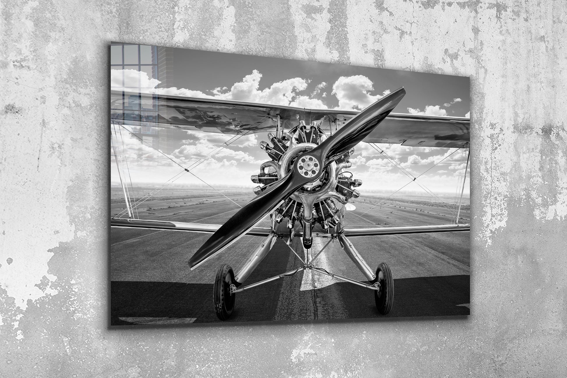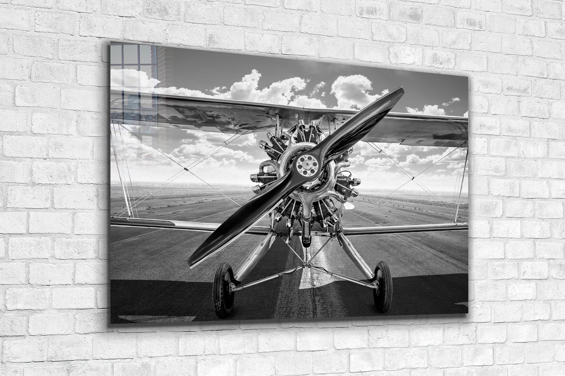 Biplane Black & White, Large Glass Wall Art