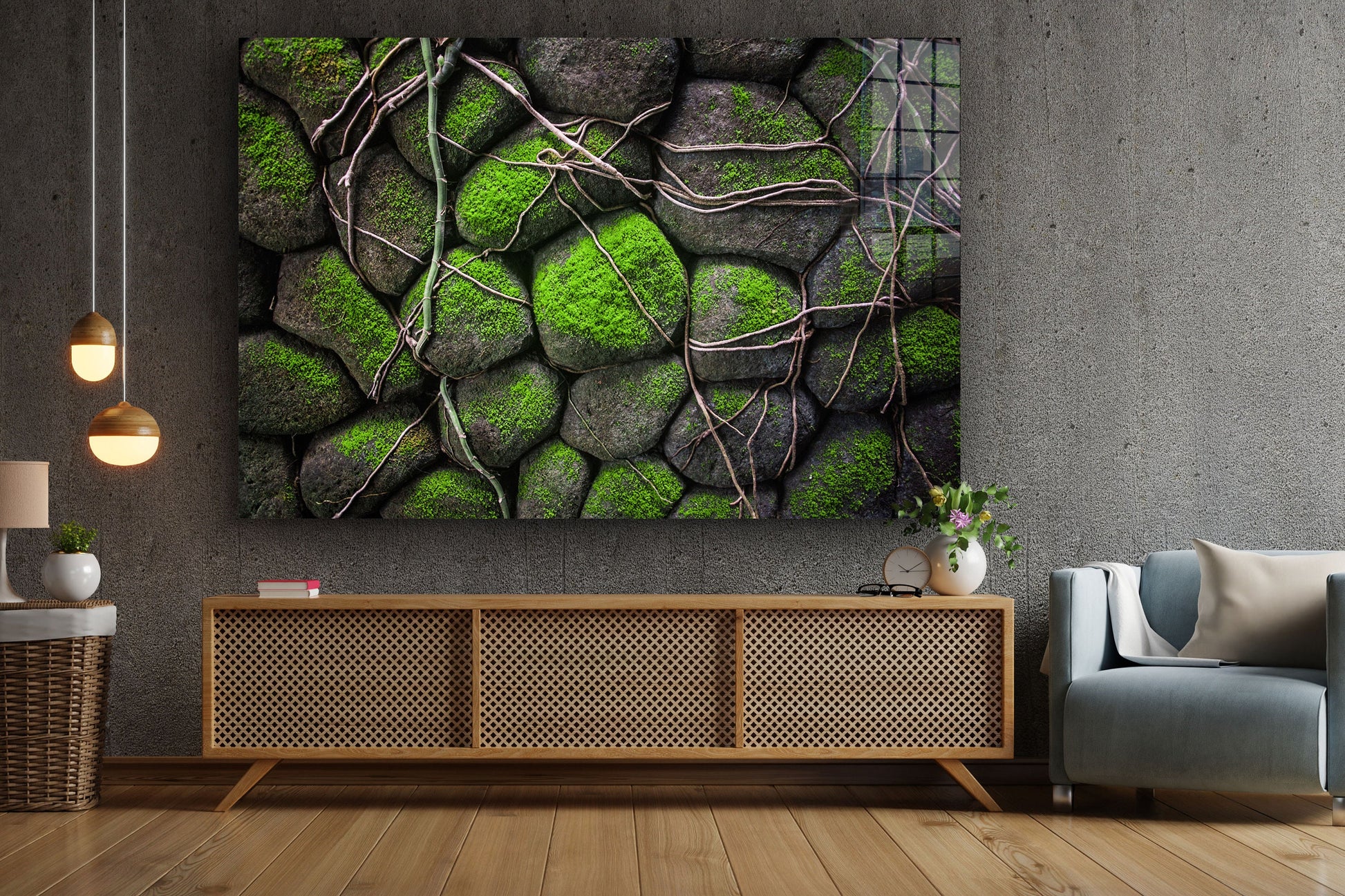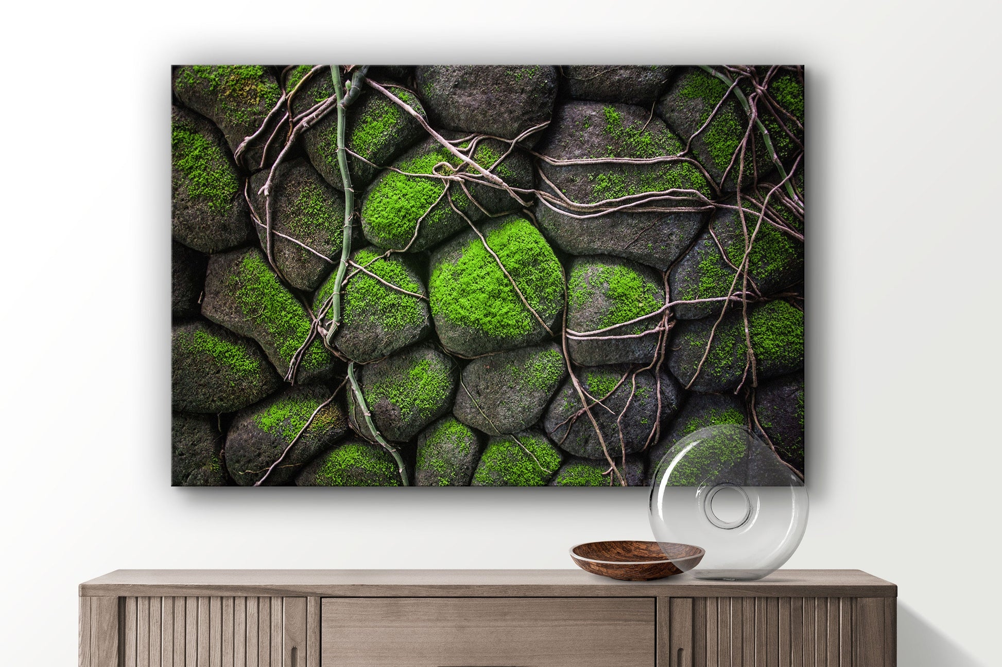 Mossy Rocks, Large Glass Wall Art