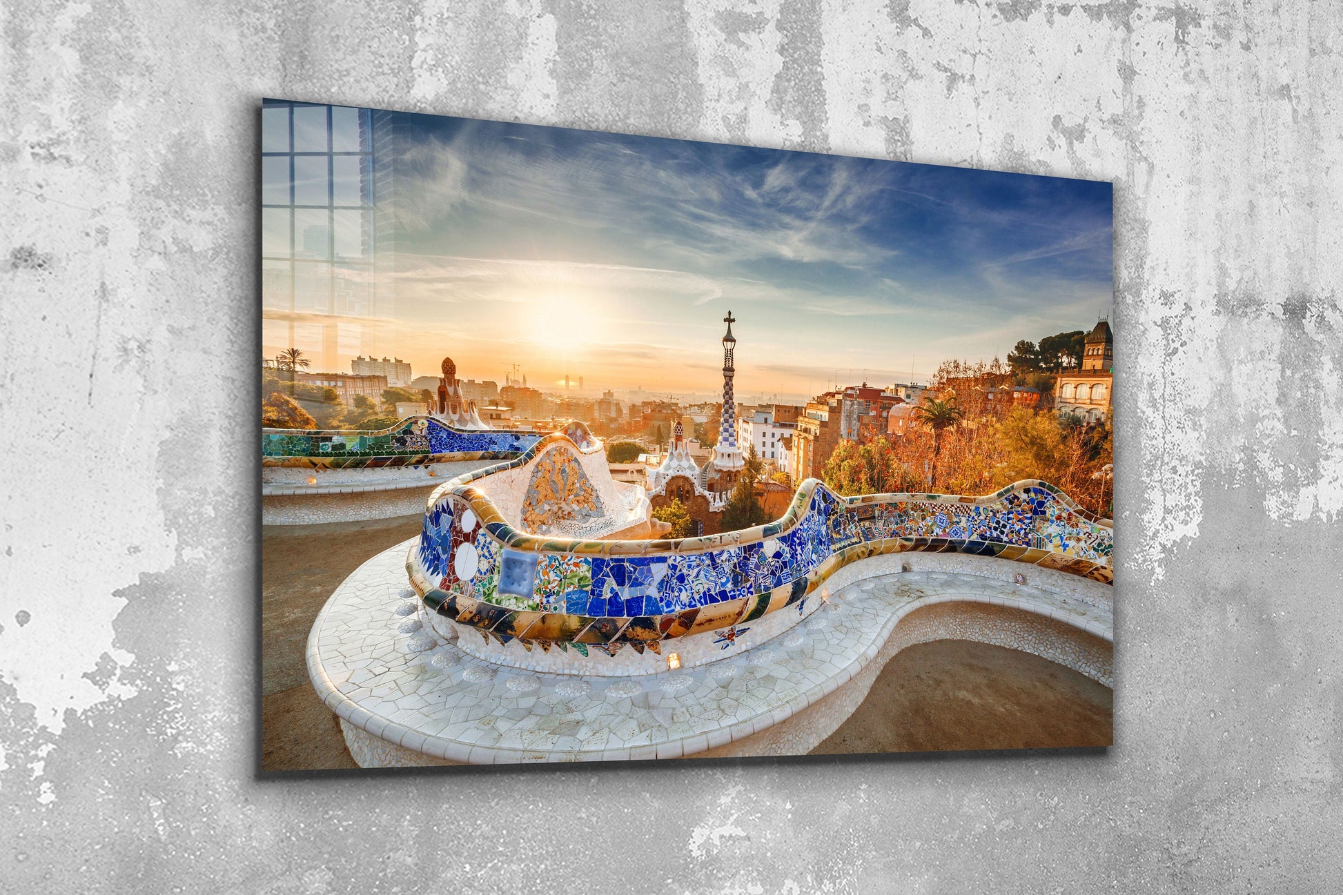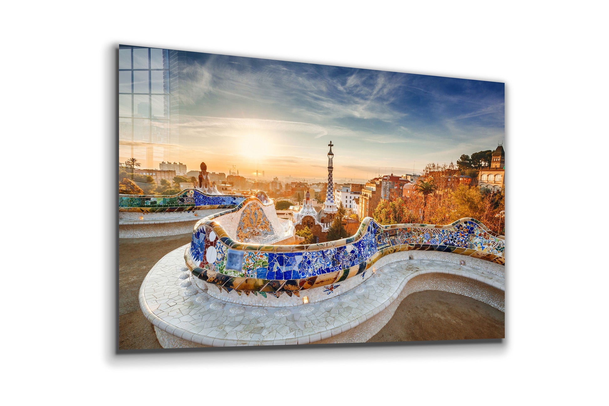 Park Guell at Sunrise, Barcelona, Spain Large Glass Wall Art