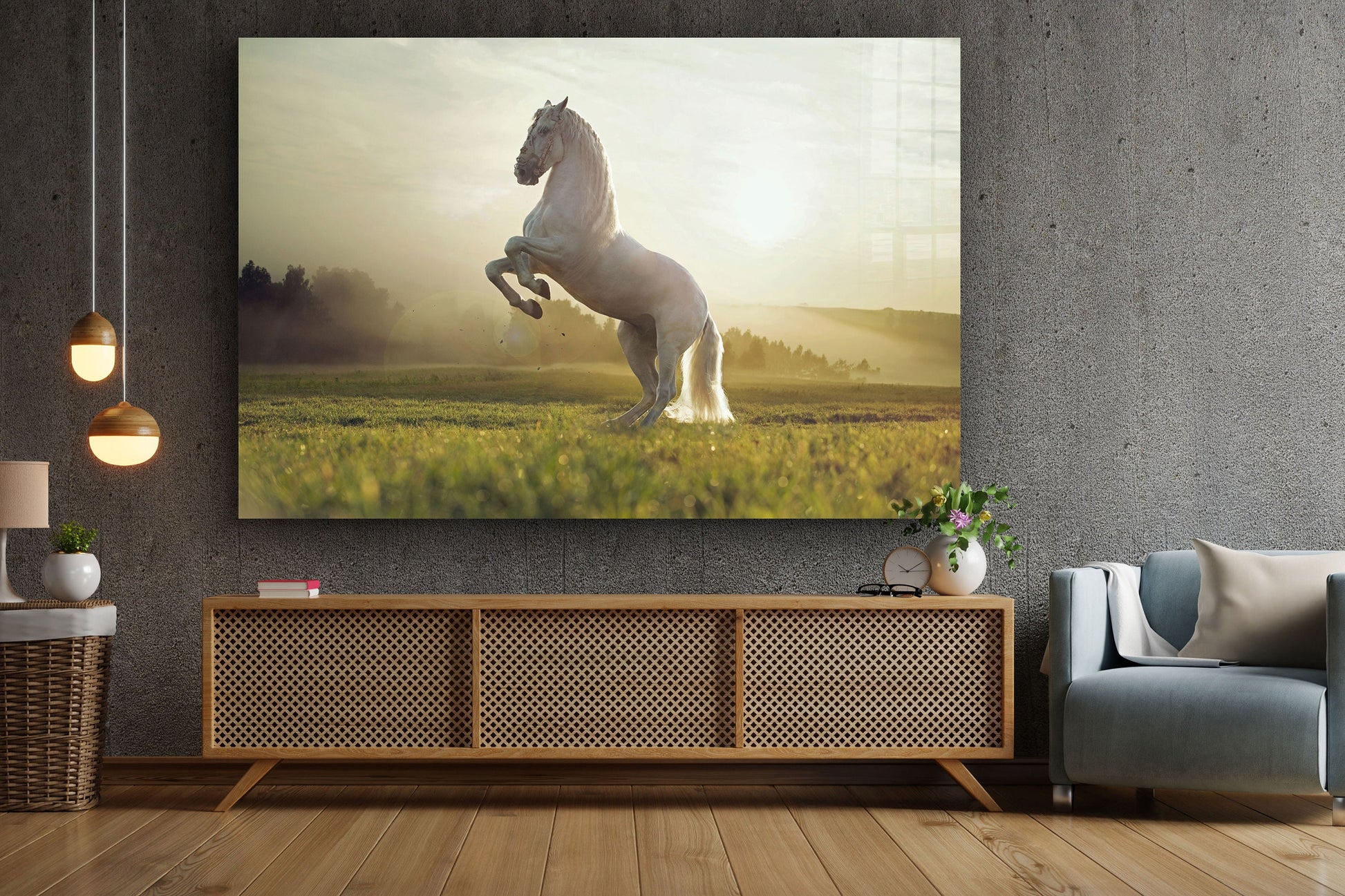 White Horse Large Glass Wall Art